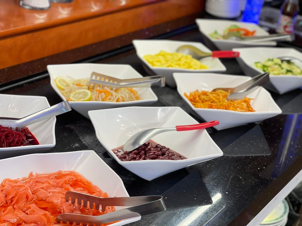 Wir machen die geschmackliche Vielfalt Asiens für Sie erlebbar. In unserem Buffet Restaurant finden Sie Klassiker wie „Ente mit Bambussprossen und Pilzen“ oder „Rindfleisch Chop Suey“ ebenso wie köstliche Fisch- und Wok-Gerichte. Freuen Sie sich auf Spezialitäten wie „Thai Curry Chicken“, „Gegrillter Lachs mit Terriyaki-Sauce“, „Knuspriges Huhn“,“ Knusprige Ente mit gebr. Rindfleisch“ „Acht Schätze in Peking Sauce“ und vieles mehr. Auch die beliebten Suhsi und Maki dürfen natürlich nicht fehlen. Freunde der vegetarischen Küche werden von unserem „ Tofu“ und der „Buddhistischen Fastenspeise“ begeistert sein. Darüber hinaus bieten wir Ihnen eine große Auswahl an knackigen Salaten und warmen Suppen als Vorspeise und köstliche Desserts als Nachspeise an.